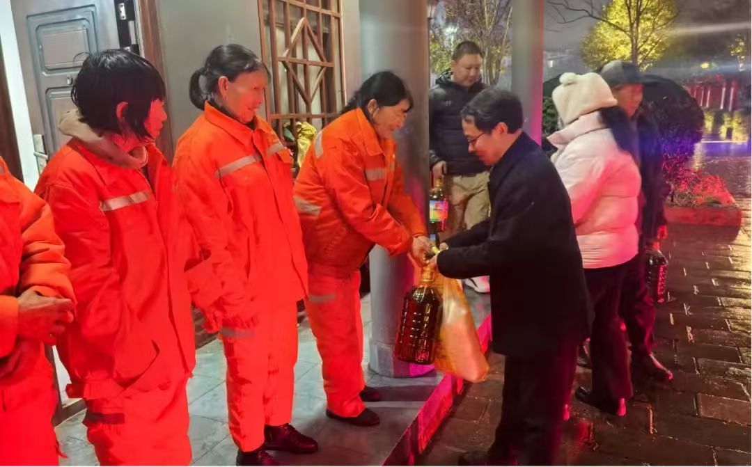 淅淅沥沥的细雨中,李永军来到化湖广场看望慰问坚守岗位的环卫工人,李永军说,过去一年,环卫工人冒着严寒酷暑在县城每个角落用心用情用力开展环卫工作,得到了各级党委政府和群众的一致好评,希望大家一如既往发扬不怕吃苦、默默奉献的精神,持续巩固提升全省最干净县城这个品牌,为全县人民提供干净、整洁、舒适的工作和生活环境。