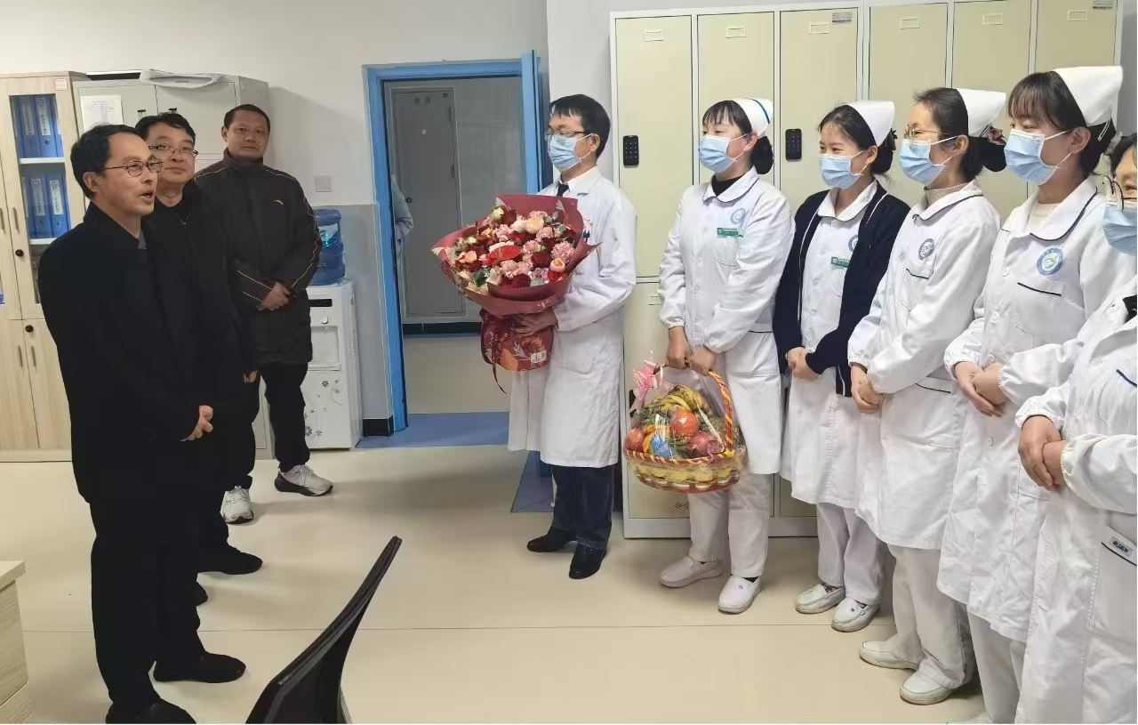 在县紧密型医共体总医院县人民医院院区,坚守岗位的医护人员24小时不停歇为人民群众健康保驾护航。李永军对医务人员的辛劳付出表示感谢,叮嘱医院要切实做好医疗保障、医疗救治等各项工作,确保春节期间的医疗工作正常开展;同时要关心关爱医护人员,落实好各项保障措施。随后,李永军到病房看望了住院病人及家属,鼓励患者要安心治疗,早日康复出院。