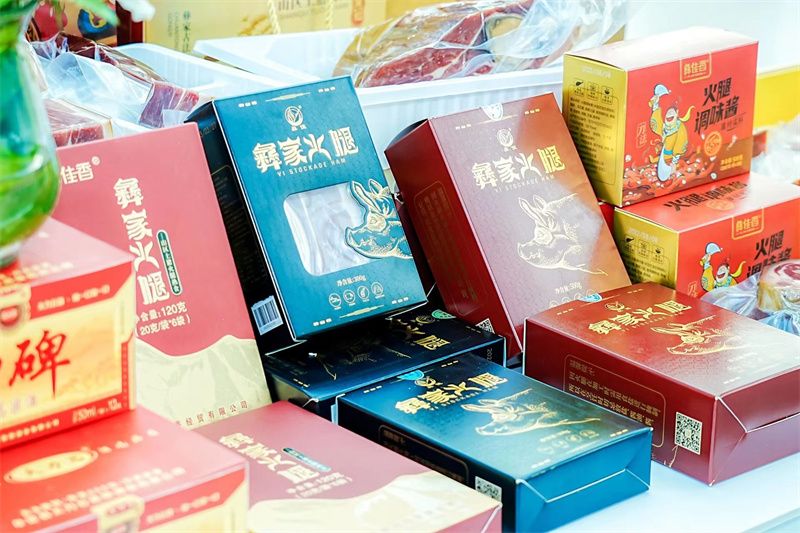 新闻发布会后,现场展陈的牟定特色产品吸引了嘉宾的关注,精美的刺绣、著名的腐乳、新鲜的水果、彝家的火腿……颇受大家的追捧。