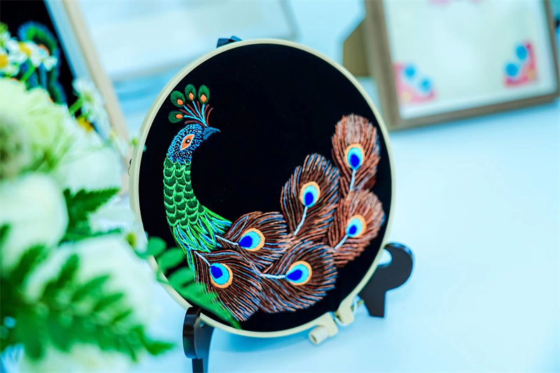 左脚舞文化的传承发展也带动了彝绣产业的发展,在楚雄州发展彝绣产业“1+1+N”政策体系的保障推动下,牟定彝绣产业致力于推进千年彝绣创造性转化、创新性发展,带动农民增收、助力乡村振兴。目前已形成“县有园区、乡有车间、村有绣坊”的发展格局,全县彝绣产业增加值增长了10倍,绣娘人均收入从600元增加到3200元,增长了5倍,穿在身上的艺术绣品变成了可卖钱的经济商品。