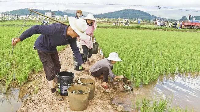 “稻田养鱼,首先节约了土地资源,增加了田块的肥力,第二个增加了稻田的透光性,我们测试下来看,稻田养鱼很多会认为会导致稻田产量减少,其实我们测下来往往养鱼的稻田谷子反而会增长5%到8%左右的产量,不会导致稻谷产量的降低。”云南省水产技术推广站农业技术推广研究员杨辉明说。
