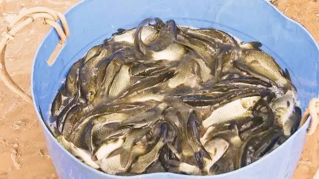 眼下正是投放稻田鱼苗的最佳时节,在共和镇军屯、天山两个村委会,连片的稻田绿意盎然、生机勃勃,农户们肩挑水桶围拢在鱼苗发放现场,经过名单核对、捞鱼称重等流程后,农户们将领取到的鱼苗小心翼翼倒入稻田内的养殖沟渠中,看着鱼苗在稻田里四处游开,村民们对稻渔综合种养增收充满期待。