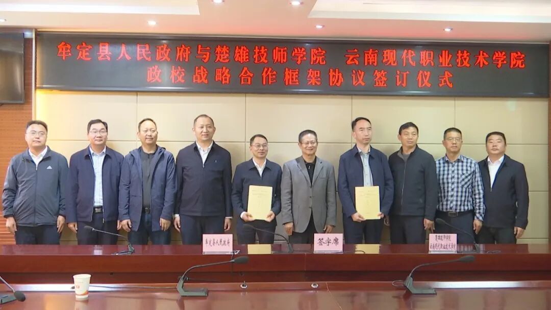 11月7日上午,楚雄技师学院、云南现代职业技术学院党委书记王若舟率调研组到牟定县开展政校合作座谈和工作调研,县委副书记、县长李永军出席座谈并签订政校战略合作框架协议。