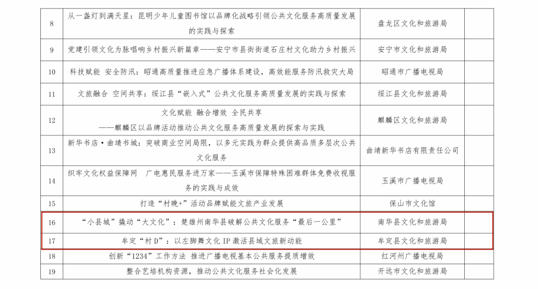 近日,云南省公布了第二批公共文化服务高质量发展典型案例名单,此次入选的案例共有30个,其中,《牟定“村D”:以左脚舞文化IP激活县域文旅新动能》成功入选!
