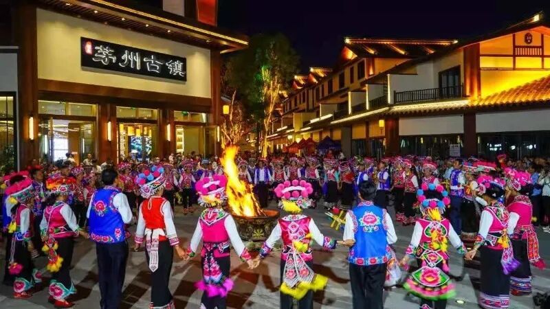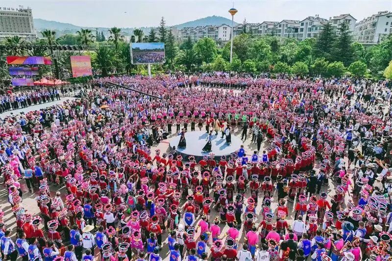 牟定“村D”:以左脚舞文化IP激活县域文旅新动能。牟定“村D”是牟定县推进“文化名县”建设的核心载体,其根基深植于被誉为彝族历史文化“活化石”的国家级非物质文化遗产保护项目——彝族左脚舞,具有上千年悠久历史,源于彝族祖先迁徙与农耕生活,承载着彝族人民对自然的崇拜与民族的记忆,简单易学的舞蹈动作,使其拥有广泛群众基础。彝族左脚舞主要流传于牟定县,其被称为“左脚舞的故乡”,牟定左脚舞曾创造了“万人同跳”的吉尼斯世界纪录。