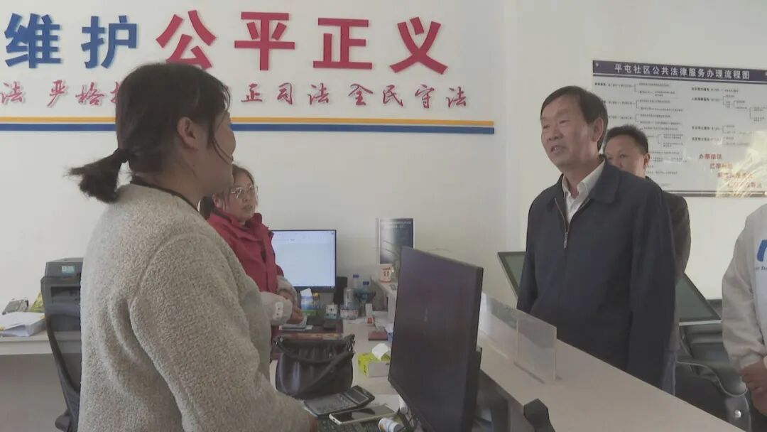 调研中,李明峰来到平屯社区综治中心、公共法律服务站详细了解其功能发挥及服务群众情况。他强调,社区综治中心和公共法律服务站是基层治理的重要阵地,要充分发挥职能优势,在矛盾调处、普法宣传、法律咨询及援助等方面提升服务群众的精准性和实效性,打通服务群众的“最后一公里”。