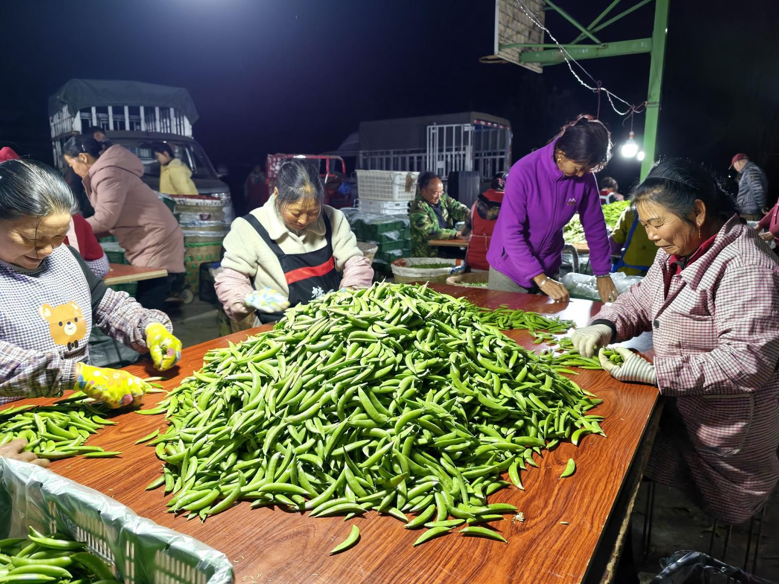 村民在交易点分拣荷兰豆