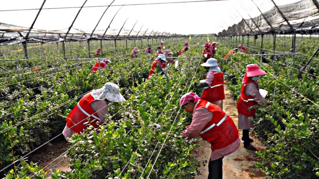 张有仙的幸福,离不开基地旺盛的用工需求。随着蓝莓进入采收旺季,基地的用工量大幅增加,这也为更多周边群众提供了就业岗位。据介绍,基地全年累计用工超过8000人次,公司每年的劳务成本支出在1000万元左右,切实让群众在家门口实现就业增收。“进入采摘季以来,我们高峰期时候每天用工人数在400人以上,平时也能达到200人以上。高峰期每天的采摘量在8吨以上,平时也能达到4吨以上。”珀莫娜农业生物科技(云南)有限公司蓝莓种植基地行政管理人员尹地菊介绍。