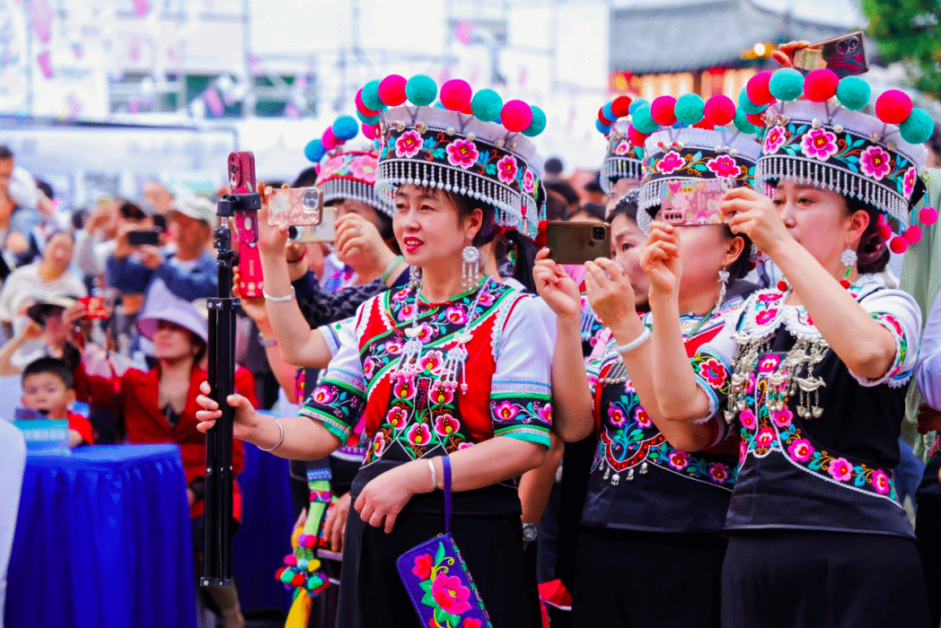 活动现场还举行了非遗时装走秀,彝绣元素与现代设计巧妙融合,让千年非遗在昆明街头绽放时尚光彩。牟定文旅知识问答和互动抽奖环节气氛热烈,现场市民和游客踊跃参与,幸运观众获得牟定腐乳、彝绣文创等特色好礼。