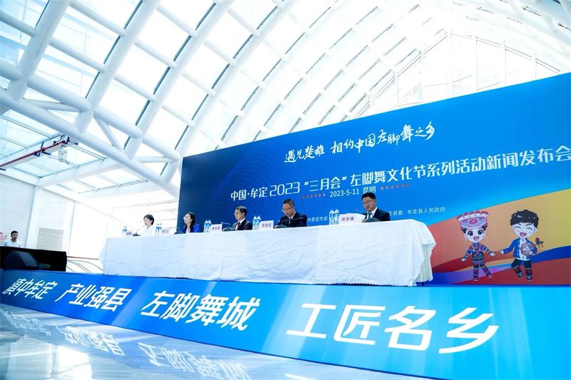 5月11日,中国·牟定2023“三月会”左脚舞文化节系列活动新闻发布会在昆明云报传媒广场举行。牟定县委副书记、县长李永军作主题发布,牟定县委副书记周国富、副县长黄玉兰和邓示锦参会并回答记者提问,楚雄州委宣传部对外新闻和交流推广科科长杨海丽主持新闻发布会。中央驻滇新闻单位、省、州各级主要新闻单位参加发布会。