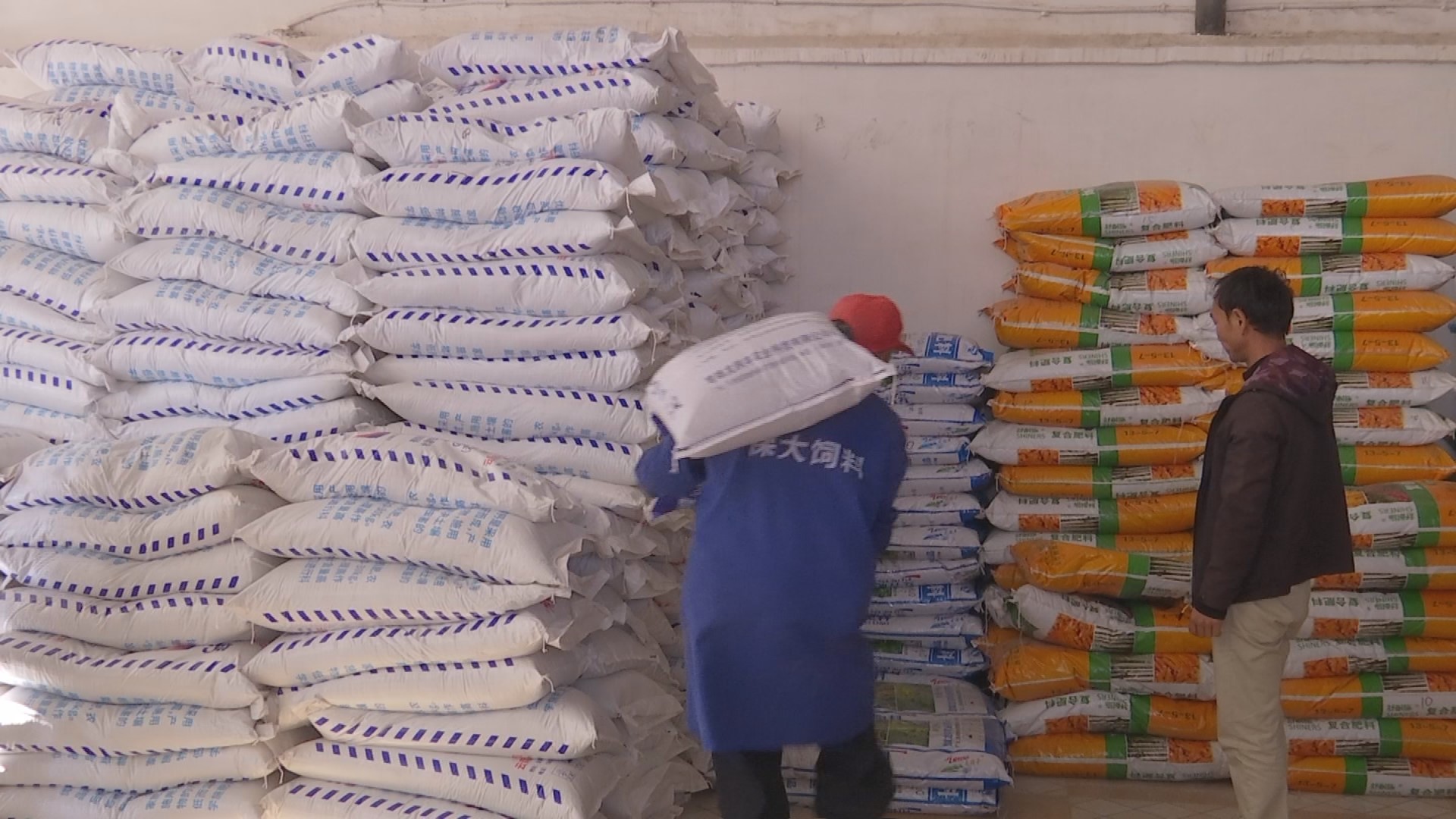 在县城中园西路的云禾农资销售有限公司经营门店,化肥、农膜、农药、种子等农用物资一应俱全。公司负责人张绍平正组织搬运工人往门店搬运、码放化肥。