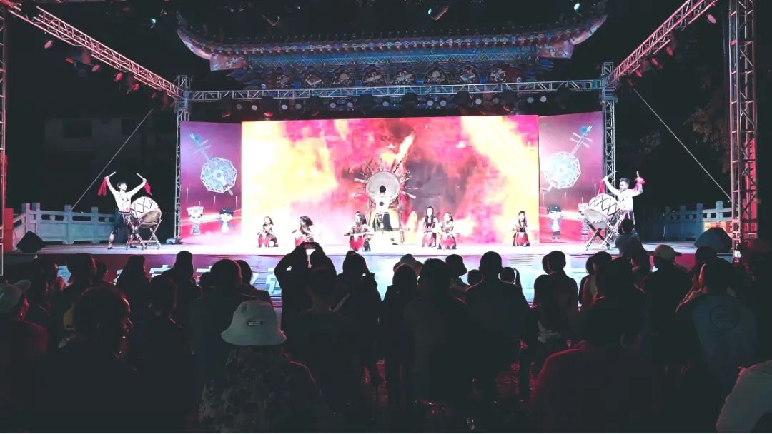 夜幕降临,华灯初上,5月3日晚的彝和园古戏台欢歌四起,热火朝天。一场由牟定县腐乳协会承办的文艺演出正如火如荼地进行。演出在舞蹈《太阳鼓》中拉开序幕,紧接着独唱《天籁之爱》《竹楼姑娘》《山歌牵出月亮来》等节目唱出了彝族儿女对爱情的美好幻想,让人感受到爱情的力量和魅力;《干酒醉》《三月六》等民族风情浓郁的彝族歌曲则展示了彝家人的豪爽与热情;舞蹈节目《三道弯》《欢快的节日》等跳出了牟定人民对生活的热爱和未来的憧憬。一个个精彩纷呈的节目为广大游客及群众带来了一场酣畅淋漓的文化盛宴。