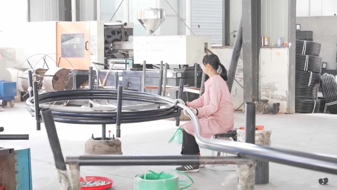 一团团废弃的地膜及滴灌管,经过一道道工序的加工处理,摇身一变,成了一根根排水管道。走进位于牟定县工业园区庄三核心区的云南盛锦达节水科技有限公司,工人们正在把从农户手中收购来的废旧地膜以及相关的塑料产品,经过清洗、打碎后,加工做成塑料颗粒,再经过数道工序的处理,一根根排水管就生产出来了。