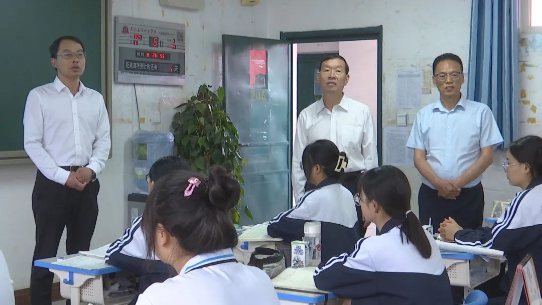 在牟定县第一高级中学,李明峰、李永军等领导实地检查、详细了解考点准备情况,看望慰问了高考考生,向全县广大考生致以美好祝愿,向奋战在备考一线的广大教职工表示诚挚问候。