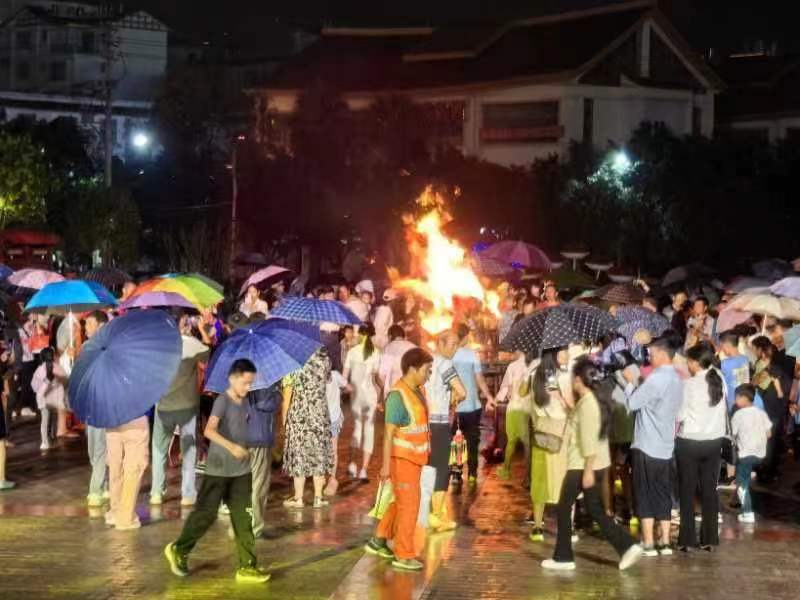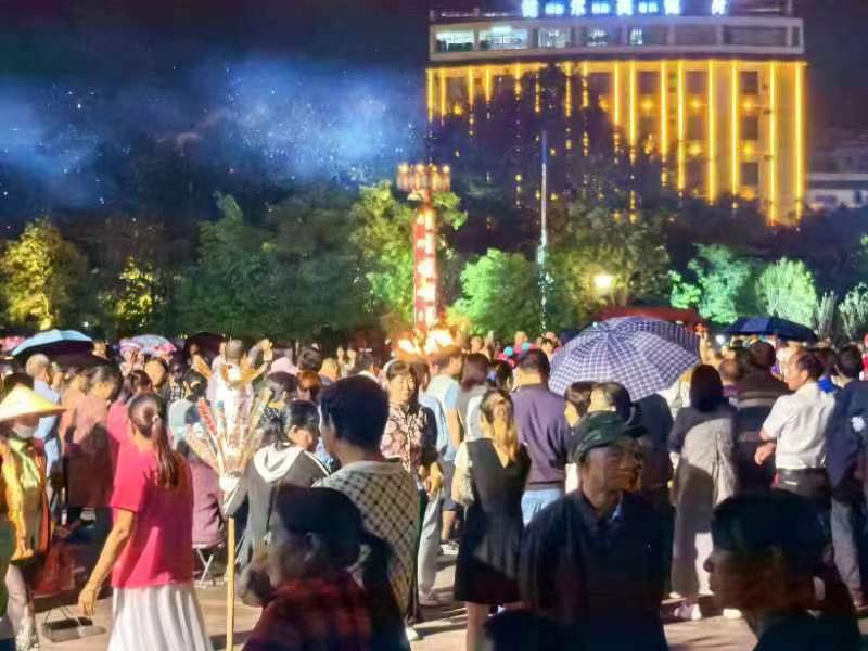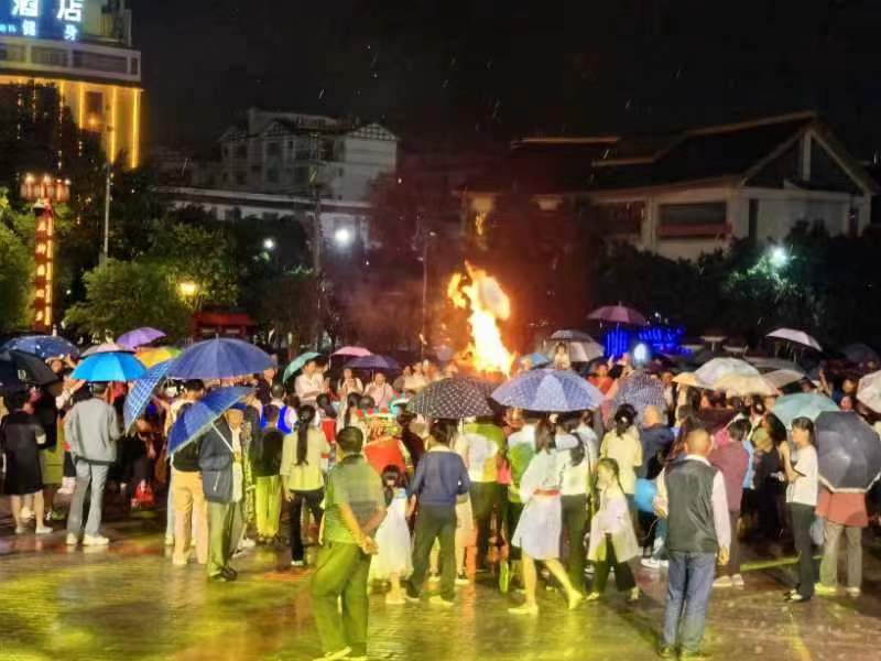 7月29日是农历六月二十四彝族火把节,是彝家人最隆重的节日,当天晚上,牟定县举行“火把狂欢”篝火晚会,广大群众集聚在县城化湖广场、茅州古镇等地开展左脚舞狂欢活动,释放火一样的热情,欢度红红火火的火把节。