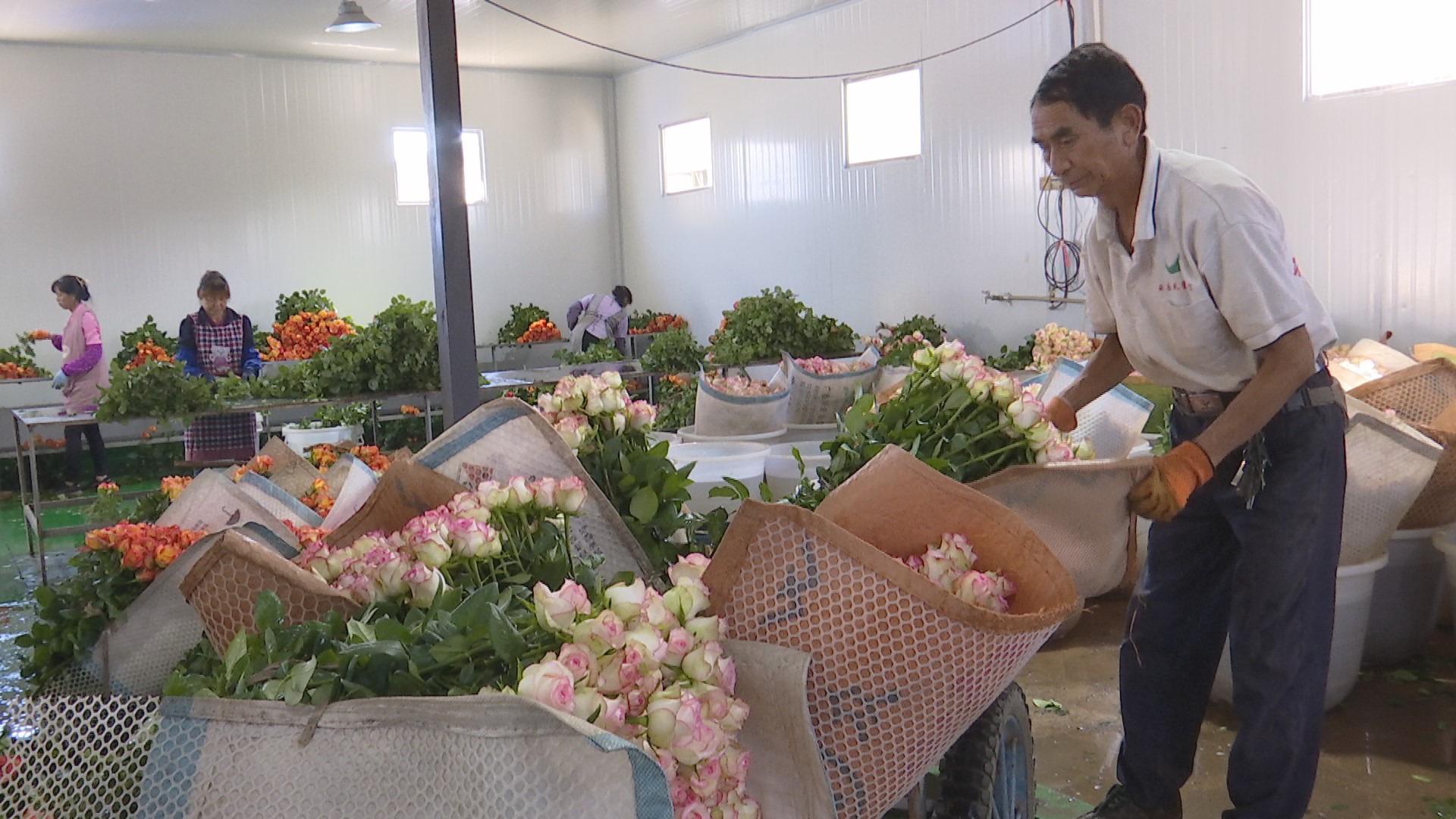 在共和镇牟尼村委会花卉种植基地里,花农秦正聪种植的35亩玫瑰迎来了采摘销售高峰期,天刚亮,秦正聪就和家人在大棚里忙碌起来,到下午5点左右,秦正聪一家当天就完成500多把、10000多支红玫瑰的前期采摘和后期的分拣、包装等工作,准备将一筐筐玫瑰发往昆明斗南花卉市场。