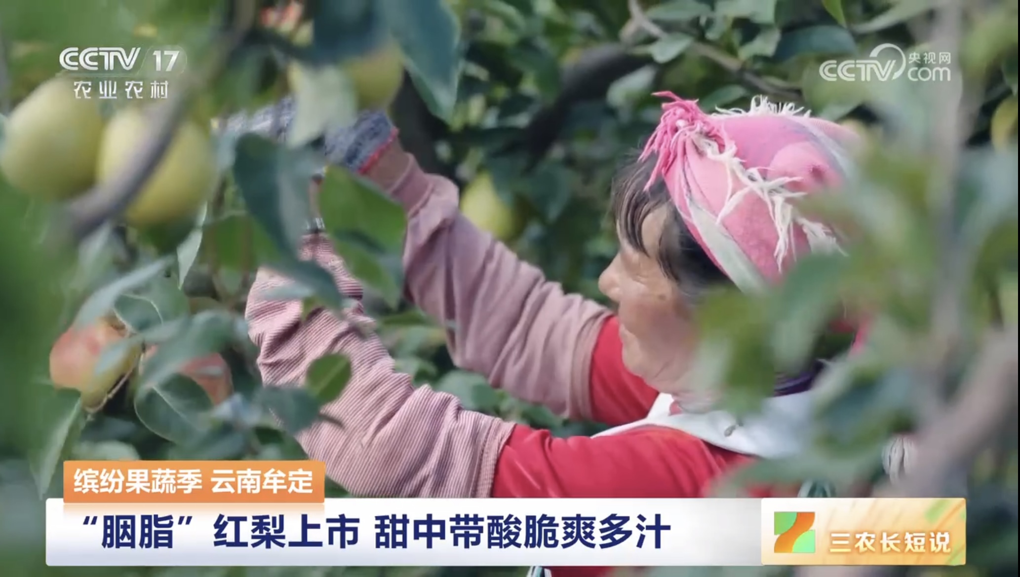 8月20日,中央广播电视总台农业农村频道报道牟定县凤屯镇万亩云南红梨丰收。