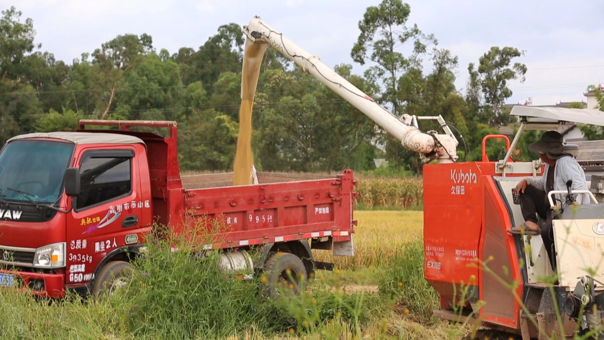 秋收时节,在共和镇际盛村,田间飘来阵阵稻香。牟定县隆兴农机专业合作社理事长唐启玉正驾驶着新型收割机穿梭于田间,及时组织人力拉运、烘干稻谷,一派忙碌的丰收景象。