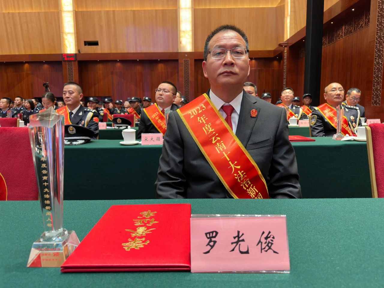 2024年10月25日下午,“2023年度云南十大法治新闻人物”颁奖典礼在云南海埂会堂隆重举行,楚雄州牟定县法院审判委员会专委罗光俊法官获评“2023年度云南十大法治新闻人物”。楚雄州中级人民法院党组书记、院长魏炜,牟定县法院党组书记、院长刘琼参加了颁奖典礼。