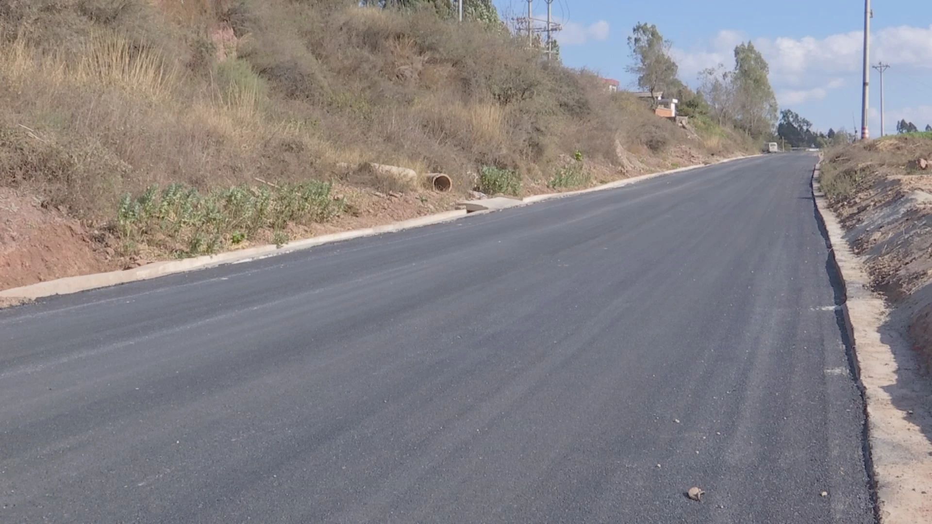 目前,牟定县城至飒马场加油站公路“四改三”项目一标段已完成路基防护工程建设,正进行路缘石、边沟的浇筑收尾,路面工程完成级配碎石铺筑3500米、水泥稳定碎石基层铺筑1100米。