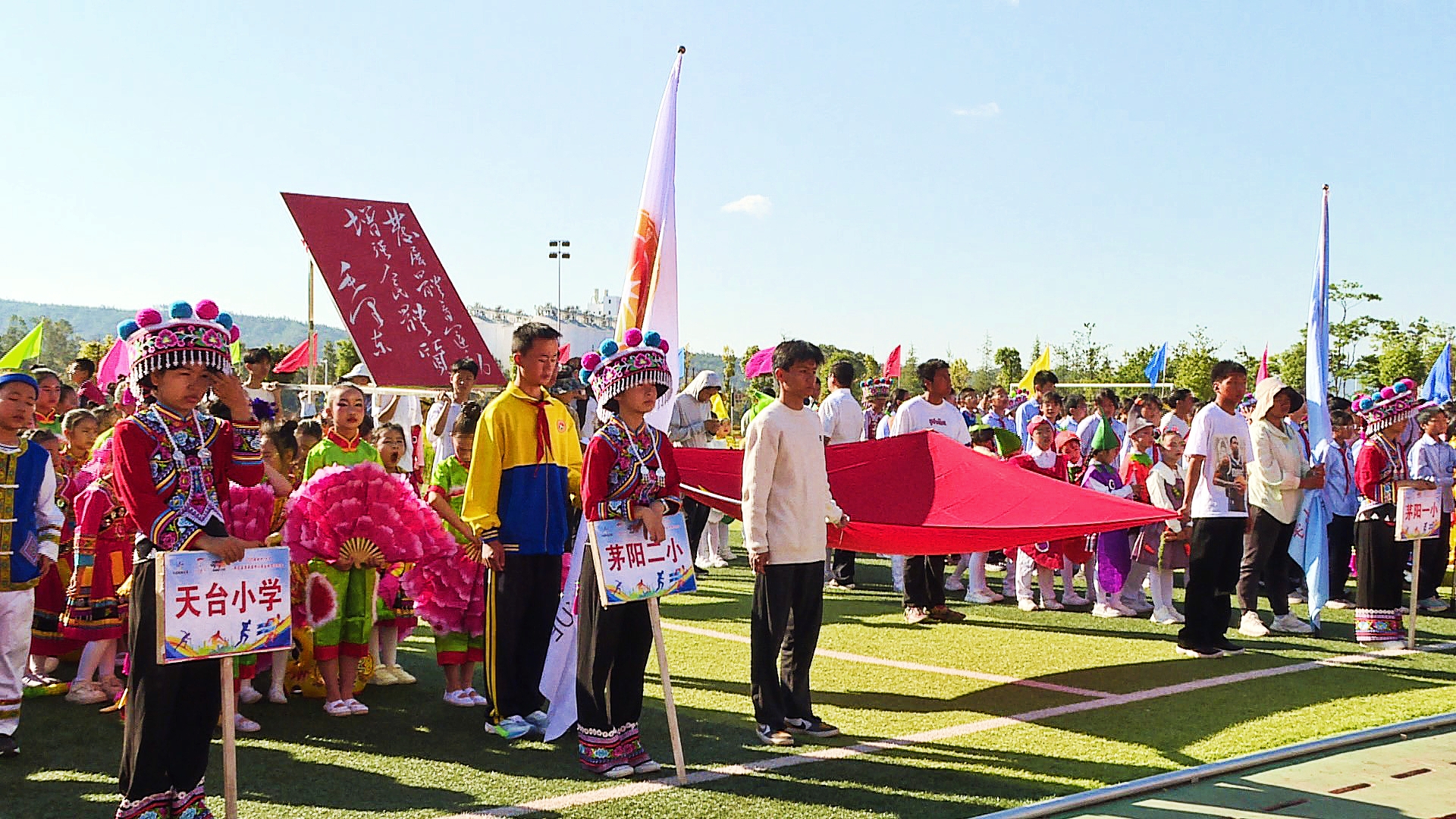 开幕式上,护旗方队率先入场,紧随其后的学校方队依次登场,逐一在主席台前进行展演,其中既有彰显地方特色元素的左脚舞、腰鼓舞等节目,也有展现青春活力的啦啦操、武术操等方阵表演。展演过程中,各方队口号嘹亮、步伐整齐,充分展现出牟定学子朝气蓬勃的精神风貌。