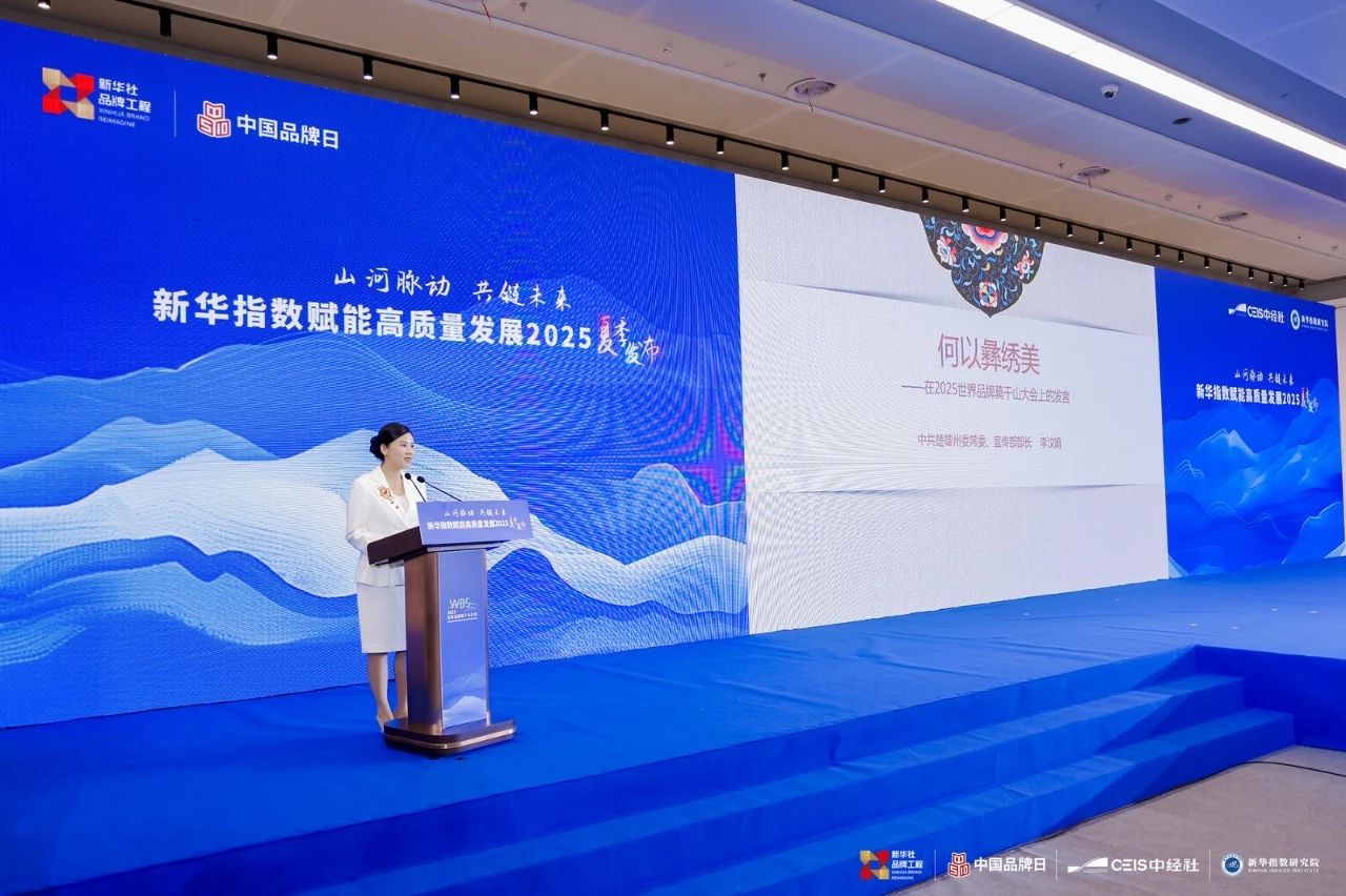 在大会主题活动“山河脉动 共链未来——新华指数赋能高质量发展2025夏季发布”上,州委常委、州委宣传部部长李汶娟作了题为“何以彝绣美——‘针’功夫‘绣’出非遗传承发展新华章”的主题发言,并参与启动新华.楚雄时装周指数等系列指数矩阵发布。