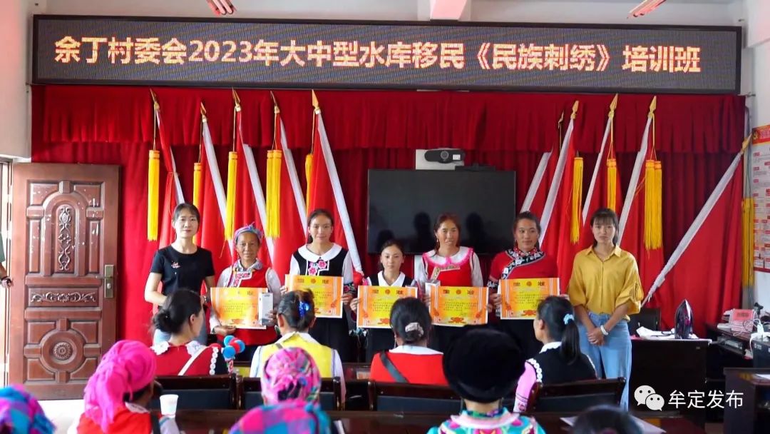 盛果村是一个典型的少数民族聚居村寨,因地质灾害,从原来的共和镇清河村委会溜口坡村搬迁到余丁村委会,并命名为象征幸福吉祥的“盛果村”,村里的彝族妇女人人能拿针、个个会绣花,但缺少把绣片变绣品、把技能变收入的技巧和方法。培训班上,授课教师除了讲授刺绣基本技能外,还着重从产品设计、品质提升、市场把握、短视频制作及营销等方面进行理论与实操相结合的培训,让移民群众及周边村组妇女们受益匪浅,茅塞顿开。