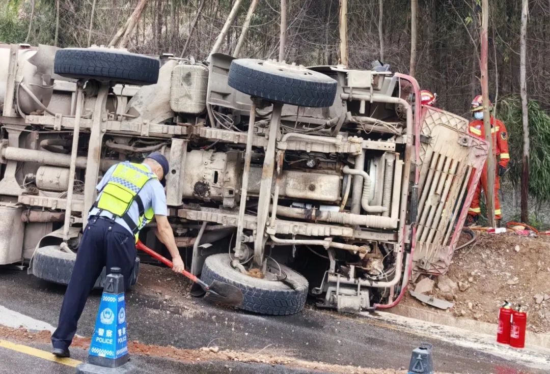 由于事发当时正处于端午节假期,事故现场车流量大,后方源源不断有车辆疾驰而来,一分一秒都特别珍贵。新桥派出所民警赶赴现场后,立即兵分两组,一组维护现场道路交通秩序,利用警车阻隔车流,形成了一个临时的交通管制区域,并向县交警大队请求支援;另一组在县消防救援大队、县120急救中心配合下开展救援,确保驾驶员能及时得到救助。