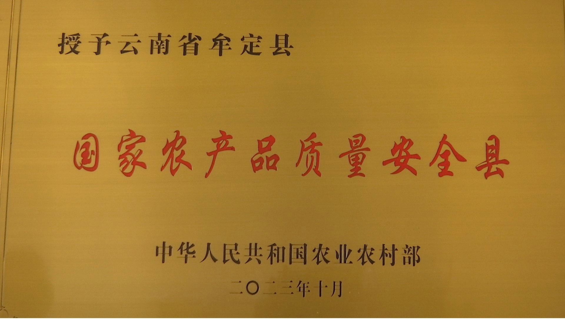 近年来、牟定县认真落实“用最严谨的标准、最严格的监管、最严厉的处罚、最严肃的问责”四个最严的食品安全监管要求和食品安全的“产出来”“管出来”的重要指示批示精神,着力解决群众关心关注的民生问题,推动农产品质量安全建设。2023年10月,牟定县被农业农村部授予国家农产品质量安全县称号。