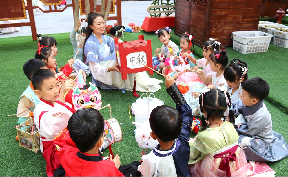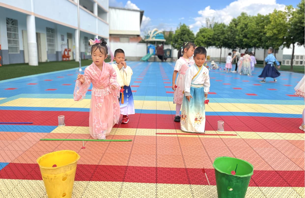 传统游戏闹中秋。在欢乐的游戏场上,汉服秀、抢月饼、摘果果、挂灯笼、投壶、套圈等传统游戏深受孩子们喜爱,孩子们在欢乐的氛围中共度中秋。
