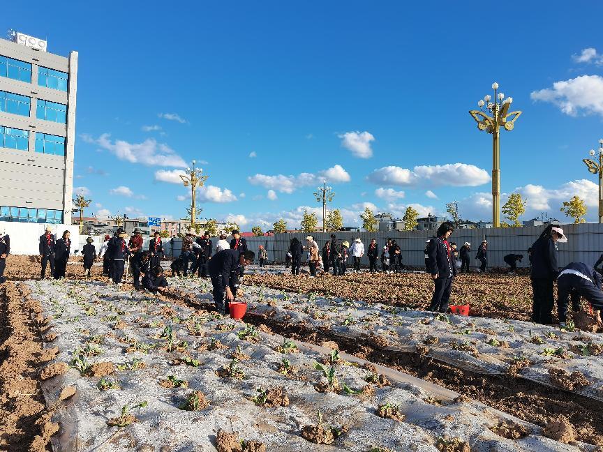 在老师的示范和指挥下,学生们捡拾基地里的石头、平整土地、除草……经过两个小时的辛勤劳作,各班都圆满完成了预定的任务。