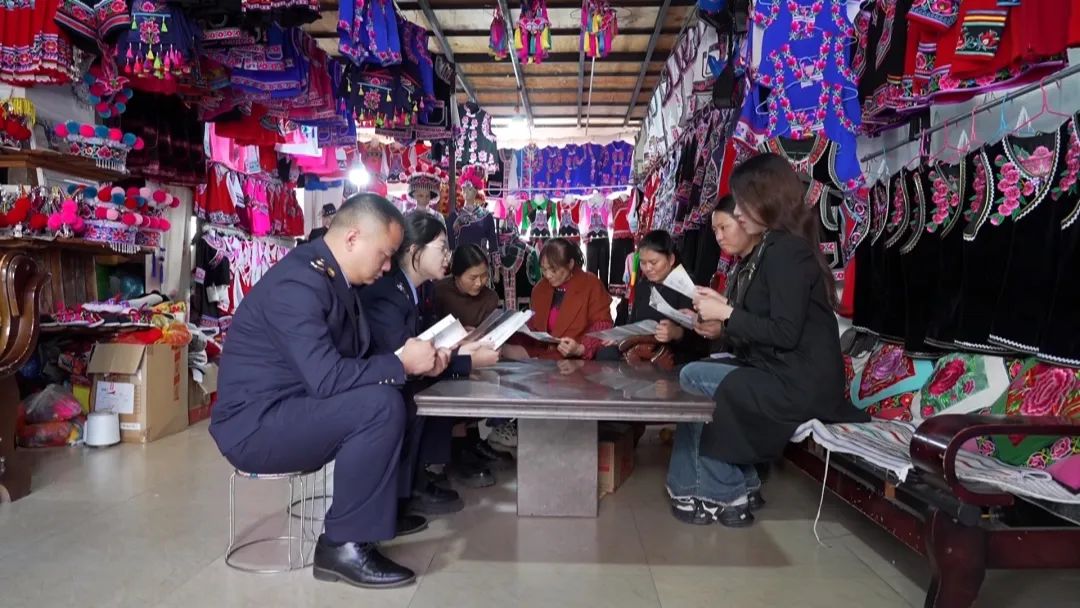 在牟定县杰鲁彝绣文化传播有限公司的绣品展销区,牟定县税务局的青年干部正为绣娘们普及个人所得税的相关知识。“以前我母亲还要跑到税务局去咨询,现在感觉太幸福了,税务局工作人员直接就找上门来为我们宣传政策,引导企业向着更好的方向去发展。”牟定县杰鲁彝绣文化传播有限公司法定代表人金瑞瑞说。
