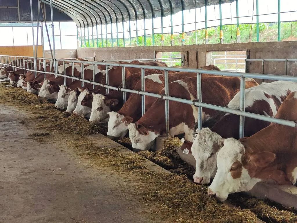 刚建厂时,喂养原料不足是制约企业发展较大的难题,每年都要花费75万元向省外购买干草料。为解决喂养原料不足的问题,企业着力从向农户收购青黄玉米秆、玉米秸秆及种植青草等方面解决。2024年,企业从当地收购青黄玉米秆1500余吨、玉米秸秆4000余吨,带动群众增收195万余元。同时,企业在安乐乡党委政府协调支持下,还在猫街、石板、河心、直苴4个村委会流转600亩土地种植巨菌草,解决青草缺乏的问题。“我们流转的土地主要是以农户撂荒的土地为主,签订了10年的合同,流转的费用是前五年平均在250元一亩,后五年是280元一亩,地租下来以后,不但能解决我们饲草问题,然后通过牛粪还田解决我们的粪污问题,还可以改良土壤。”王明介绍。