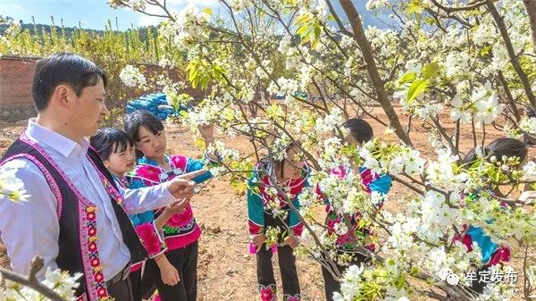 阳春三月,在牟定县凤屯中心小学,樱花、梨花、万年红竞相绽放。锦簇花团和白墙黑瓦的美丽乡村相映成画,师生下课之余被春日美景吸引赏花,感受春天的气息。