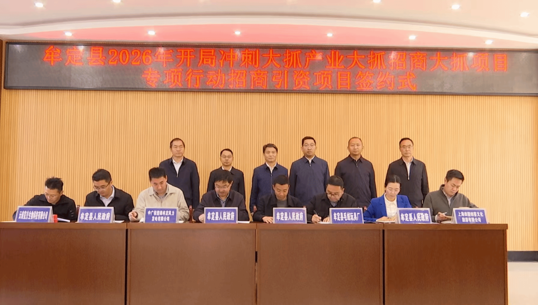 在当天举行的招商引资项目签约活动中,县人民政府还分别与中广核楚雄牟定风力发电有限公司、上海田园创客文化旅游有限公司等4家企业签约项目4个,项目总投资10.586亿元,投产后预计年产值1.45亿元,带动660人就业。(牟定县投资促进局)