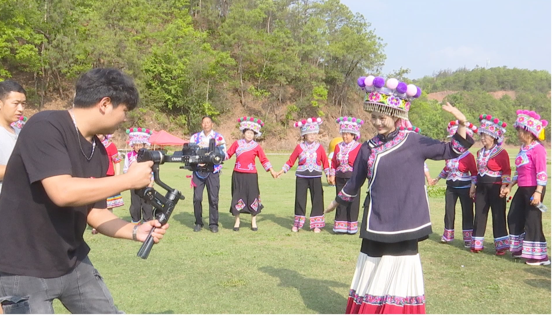 旅拍博主余周睿穿上当地绚丽多彩的民族服饰,跟当地村民同跳左脚舞,体验牟定独有的民族风情和“三月会”的特有魅力。