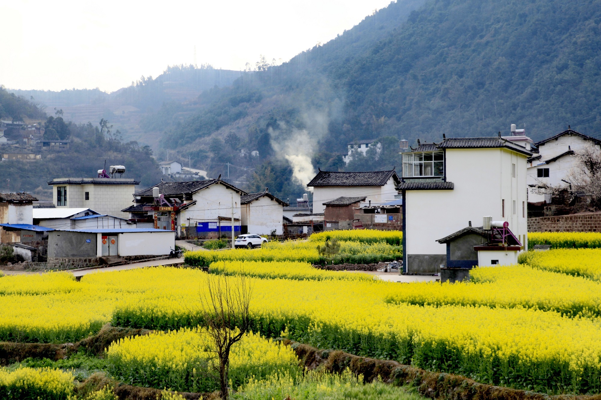 古岩河继续奔流,流经春天油菜花遍地绽放的地方叫母鲁打,彝语为龙打坝的地方。村庄依山而建,千亩油菜在这里迎风生长,油菜花翻滚着金黄的波浪,等着人们来踏春欣赏。若是正月十五,这里还有一场彝族盛会,身穿五彩花衣的彝家男女自发聚集到这里弹弦子跳左脚舞,人群围成一个个大圈,大圈里再套着小圈。弦子响起时,人们一同跺下右脚,同时踢出左脚,艳丽的衣裳随着欢快的舞步翻飞,悠扬的歌声在金黄色的油菜花田里回荡,形成一道亮丽的风景线。