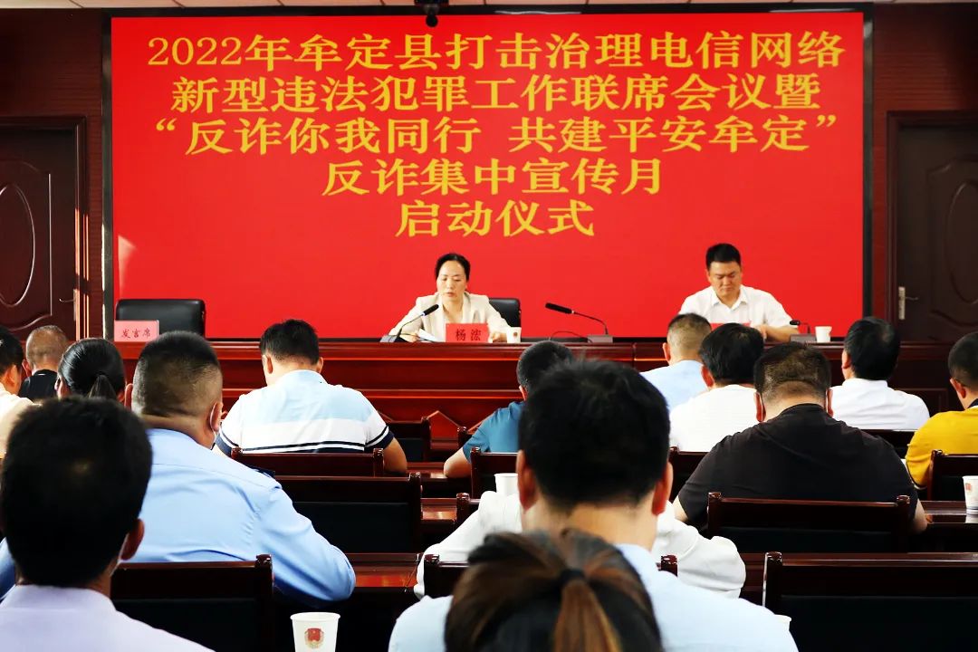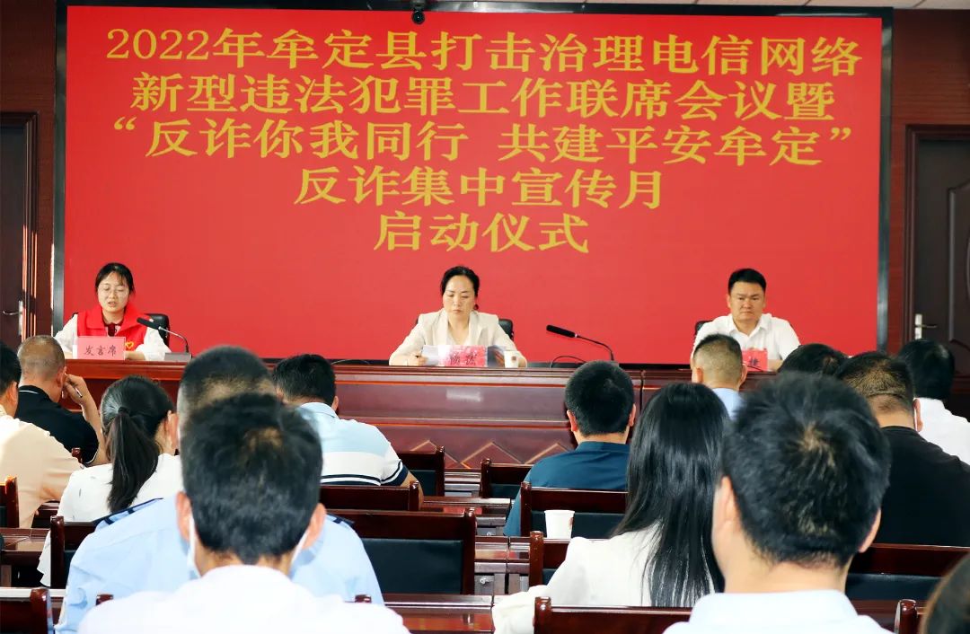 启动仪式上,全体参会人员集中观看了反诈宣传片。县公安局党委委员、副局长朱龙通报了2021年度牟定县打击治理电信网络诈骗违法犯罪工作情况。县委网信办、县工信局、县电信公司、县移动公司等单位负责人作交流发言,志愿者代表宣读《反诈倡议书》。