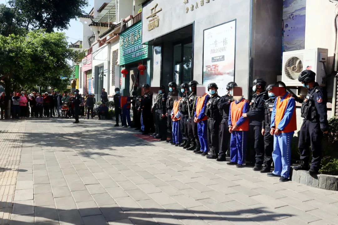 为确保公开指认现场活动安全、顺利,牟定县公安局抽调50余名警力,出动车辆6辆,押解犯罪嫌疑人到茅州古镇、南大街、彝和园、锦绣小区、高平小学、滇中引水工程项目部等地一一指认作案现场。全体参战民辅警定岗定责,有条不紊开展现场警戒、秩序维护、安全保卫、社会面控制等工作。沿途中,警灯闪烁、警笛呼啸,广大群众驻足观看,纷纷谴责犯罪嫌疑人的可耻行为,对公安机关抓获犯罪嫌疑人创造良好社会治安秩序表示满意和称赞。