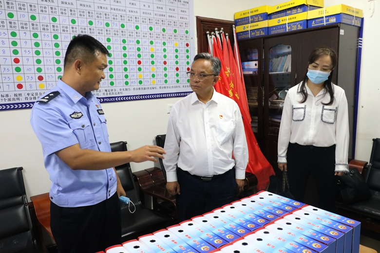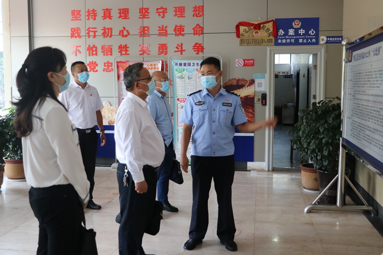 8月17日, 州委政法委常务副书记杨爱学一行深入到牟定县公安局对党的二十大安保维稳工作进行调研指导,牟定县委常委、政法委书记杨浤、县人民政府副县长、县公安局局长余捷等领导参与调研。