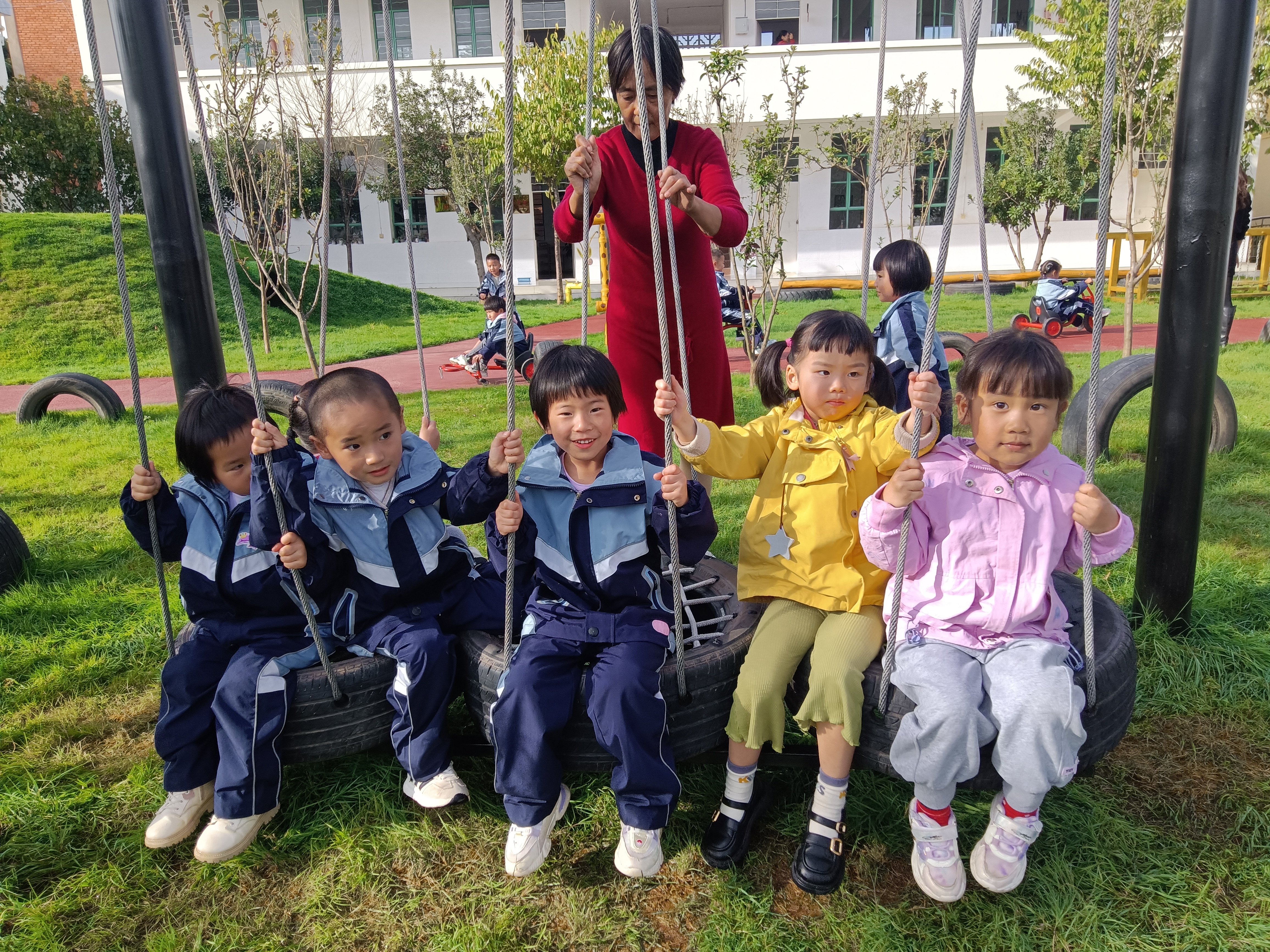 为进一步优化育人环境,增强师幼环境意识,打造生态人文校园,县幼儿园双树分园多措并举开展绿美校园创建活动。 一是精心规划,提升品味。投入资金66万多元提升改造校园、绿化美化。打造出草地、沙池、山洞、塑胶地面等多样化户外环境,搭建出奶牛、大象、长颈鹿等动物造型的景观摆件,让绿化生动起来,整个校园充盈着处处皆绿色,无处不清新的优美景象。