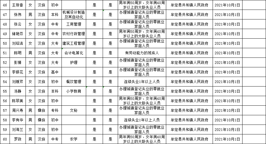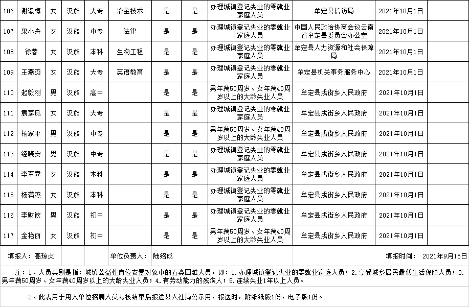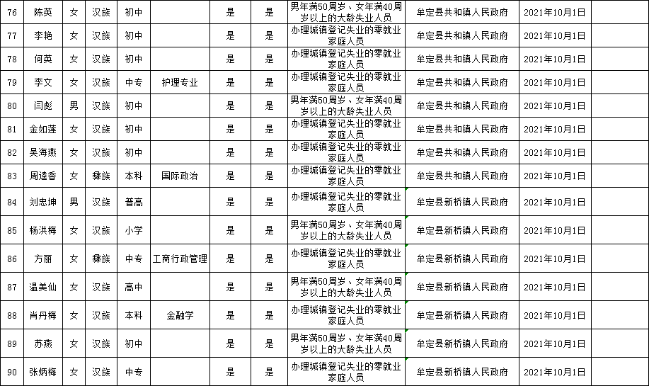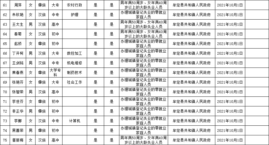 附:牟定县城镇公益性岗位拟聘用人员名单公示(2021年第14批)