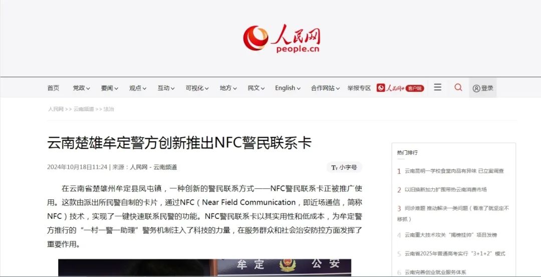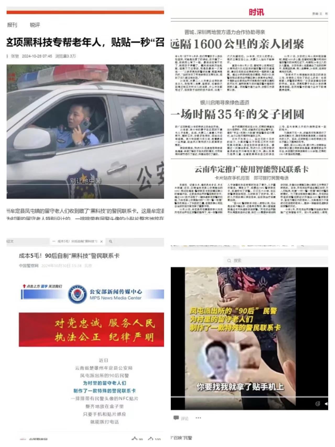 NFC警民联系卡以其实用性和低成本,为牟定警方推行的“一村一警一助理”警务机制注入了科技的力量,在服务群众和社会治安防控方面发挥了重要作用。为牟定警方推行的“一村一警一助理”警务机制注入了科技的力量,在服务群众和社会治安防控方面发挥了重要作用。