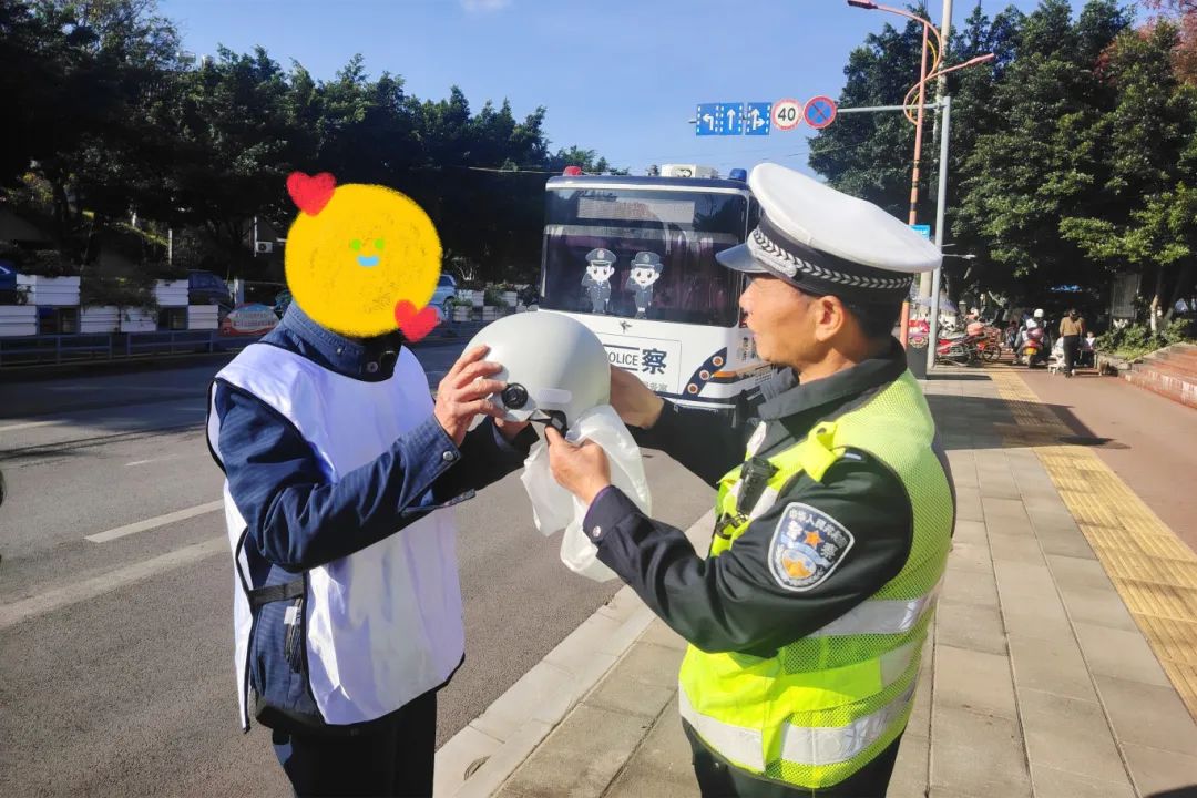 活动中,大队利用移动警务车在人流、车流密集点位开设“流动学堂”。采用“安全宣传+警示教育+违法查处”相结合的方式临街开课、现场授课,发现未按规定佩戴头盔的骑乘人员,将其引到移动警务车上,利用现场观看10分钟交通事故警示教育片、发放宣传资料、面对面讲解等形式多样的学习教育纠正方法,以学代罚、刚柔并济,将文明交通根植人心。此外,对未戴头盔的驾驶员在接受完现场警示教育后,执勤人员为其送上一顶国家3C认证安全头盔,并现场演示安全头盔的正确佩戴方法,倡导交通参与者在驾乘摩托车和电动车时自觉佩戴安全头盔,确保安全出行。