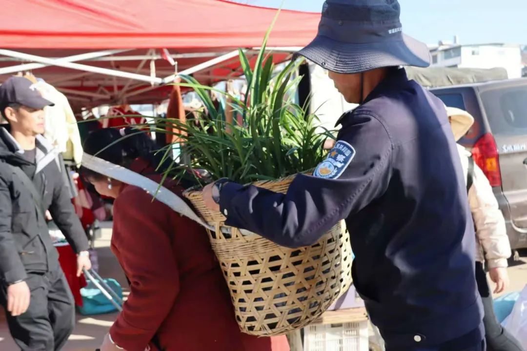 赶会现场一名阿姨年纪较大、起身背篮子时很费力,执勤民警看到后,立刻出手为老人端起了背篮;路口执勤交警指挥各类车辆进入临时停车场有序停放,期间发现一辆疑似不熟悉路况的车辆,便主动上前询问以提供帮助。在猫街灯会巡演现场,执勤辅警通过大喇叭提醒群众保管好随身财物…..民警辅警一个个暖心举措,用爱民之心画出了警民最大同心圆。