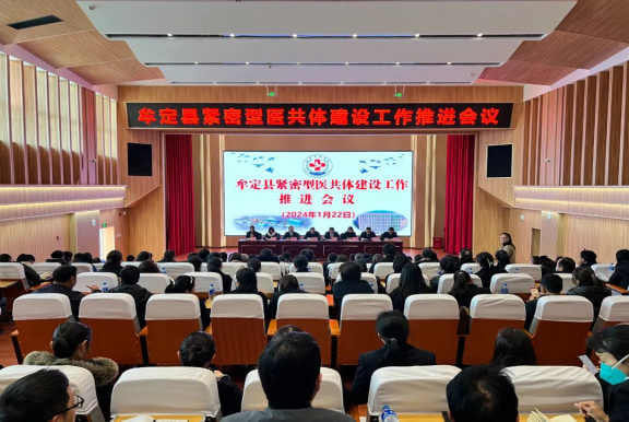 1月22日下午,牟定县紧密型医共体建设工作推进会议在总医院召开,会议由总医院党委书记刘荣主持。县卫生健康局领导班子成员、各股室长;医共体县级各分院中层及以上干部,基层分院班子成员;县疾控中心、县卫生健康监督执法局、共和镇社区卫生服务中心班子成员120余人参加会议。