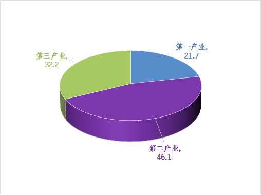三次产业经济结构从2021年的22.9︰44.1︰33.0发展为21.7︰46.1︰32.2,三次产业结构为“二三一型”。