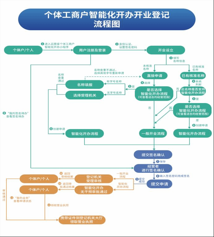 1.线上办理:个人登录“云南市场监管网上办事大厅企业开办一窗通”办理。云南市场监管网上办事大厅网址:http://gsxt.ynaic.gov.cn/webportal1/