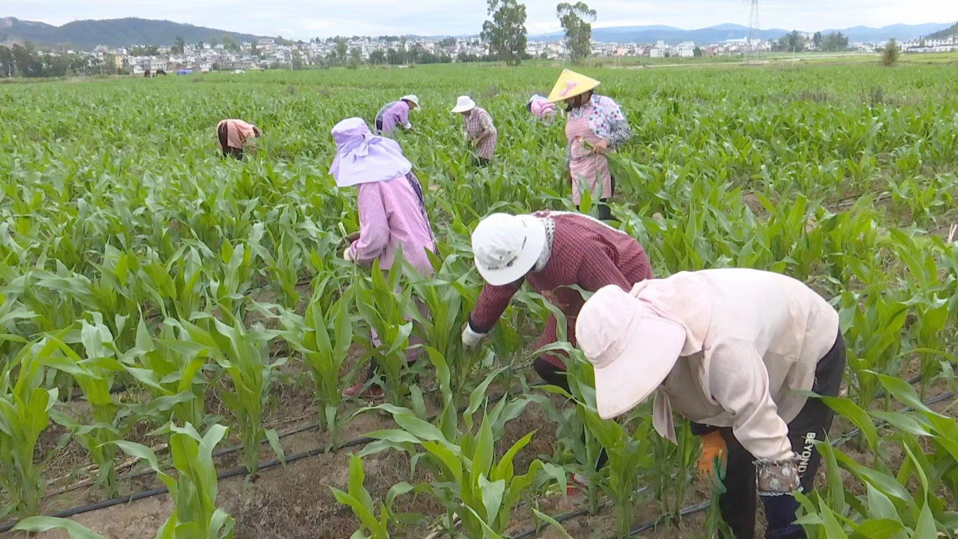 最近几天,牟定县共和镇天台村委会的1500多亩制种玉米进入了间苗时节,种植大户和工人们在田间穿梭,忙着拔掉多余的玉米苗,田间地头一片生机勃勃的景象。