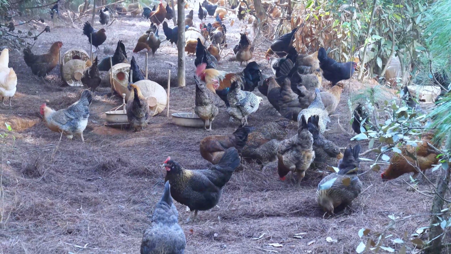 “采用传统、原生态的放养,晚上蹲在树上歇,到处跑、到处飞,如果要吃鸡,要拿像捞鱼一样的网兜,才能把它抓到。”公司总经理孟燕萍介绍说。这里的土鸡是传统的原生态放养模式,鸡群白天在广阔的山林里肆意奔跑、飞翔,晚上则蹲在树上或土洞里栖息,以山林间的杂草、昆虫为天然食物,以苞谷为生态饲料,让鸡群自由生长,全程不使用抗生素,确保每一只鸡都能在健康、自然的环境中成长。